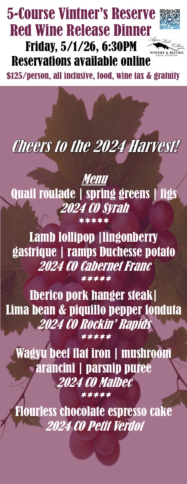 Toast to life's milestones at Aspen Peak Cellars. Our charming venue and curated menu make any celebration unforgettable.